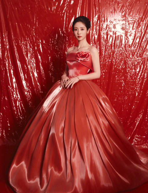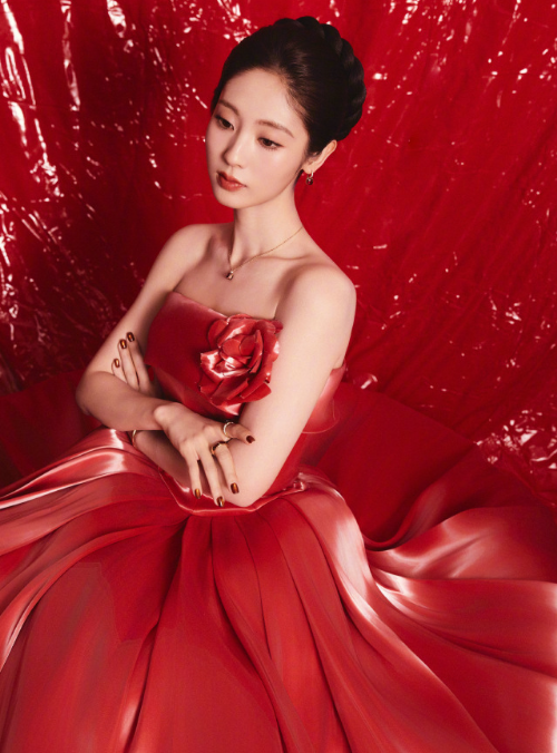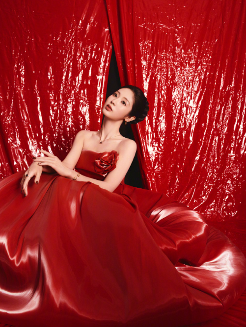 邢菲的这一组红色妆造,血气透顶的好意思!