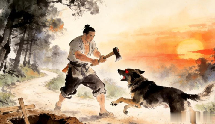 午饭后木工小憩,正在似睡非睡之际,嗅觉身边有异动,暗暗睁眼一瞧,只见这只狗正凶狠貌地详察他,木工心中一凛。晚饭后,木工照例要回家,从不拿任何东西的木工今日却把作念活用的锛扛走了。行至半途,居然见那只狗在路边已扒好了一个坑,蹲在坑边正等着木工。瞧见木工来到便猛扑上来撕咬。木工挥锛与之打斗多时,终于把狗砍死。