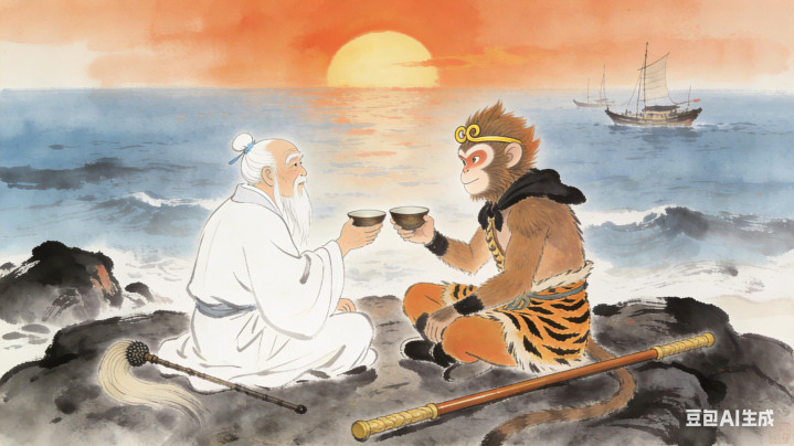 孙悟空每次途经东海,总要下去坐坐。两个已经的至人,一个依旧天高皇帝远,一个重归平素,就着咸腥的海风,能聊上泰半天。