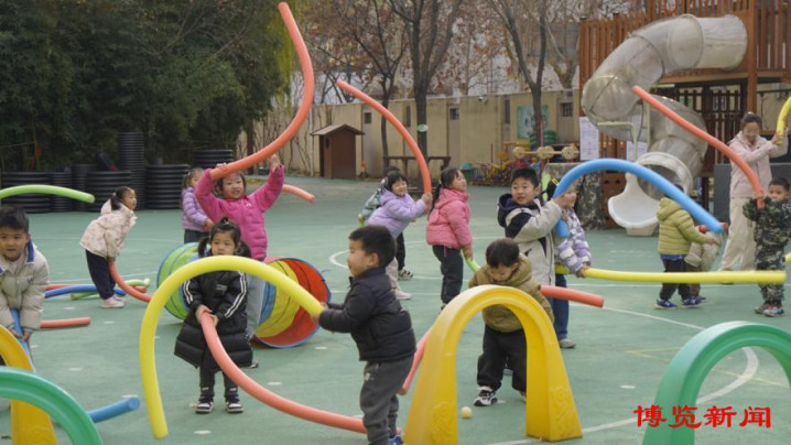 淄博高新区实验幼儿园内,孩子们正在玩耍