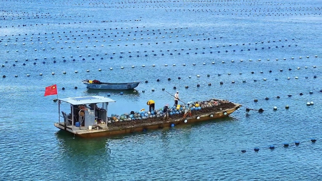 俯视大沟镇,碧波之上,蚝排、鱼塘、虾棚交织成画,奏响了一曲产业兴旺、富民强镇的海洋山歌。